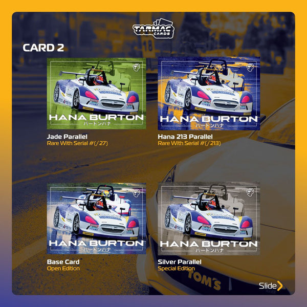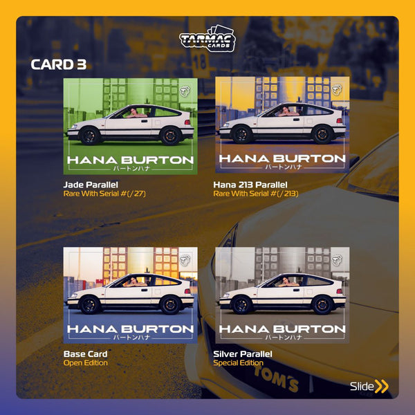 Descoperă primul set de cărți de colecție Hana Burton – Tarmac Cards Event Special Pack – Hana Burton Special Edition Vol.01! Această ediție exclusivă aduce în prim-plan pasiunea și estetica inconfundabilă a celebrului artist și designer auto, Hana Burton. Cu un tiraj extrem de limitat, acest set reprezintă o adevărată comoară pentru colecționari și pasionații de mașini.